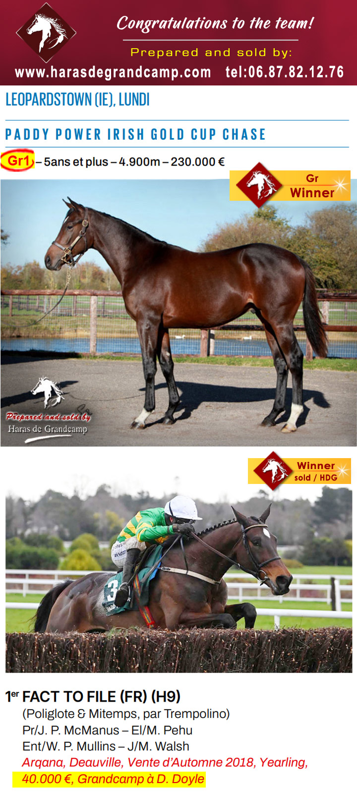 et adjugé à D. Doyle, lors de la vente d'automne Arqana de 2018, remporte