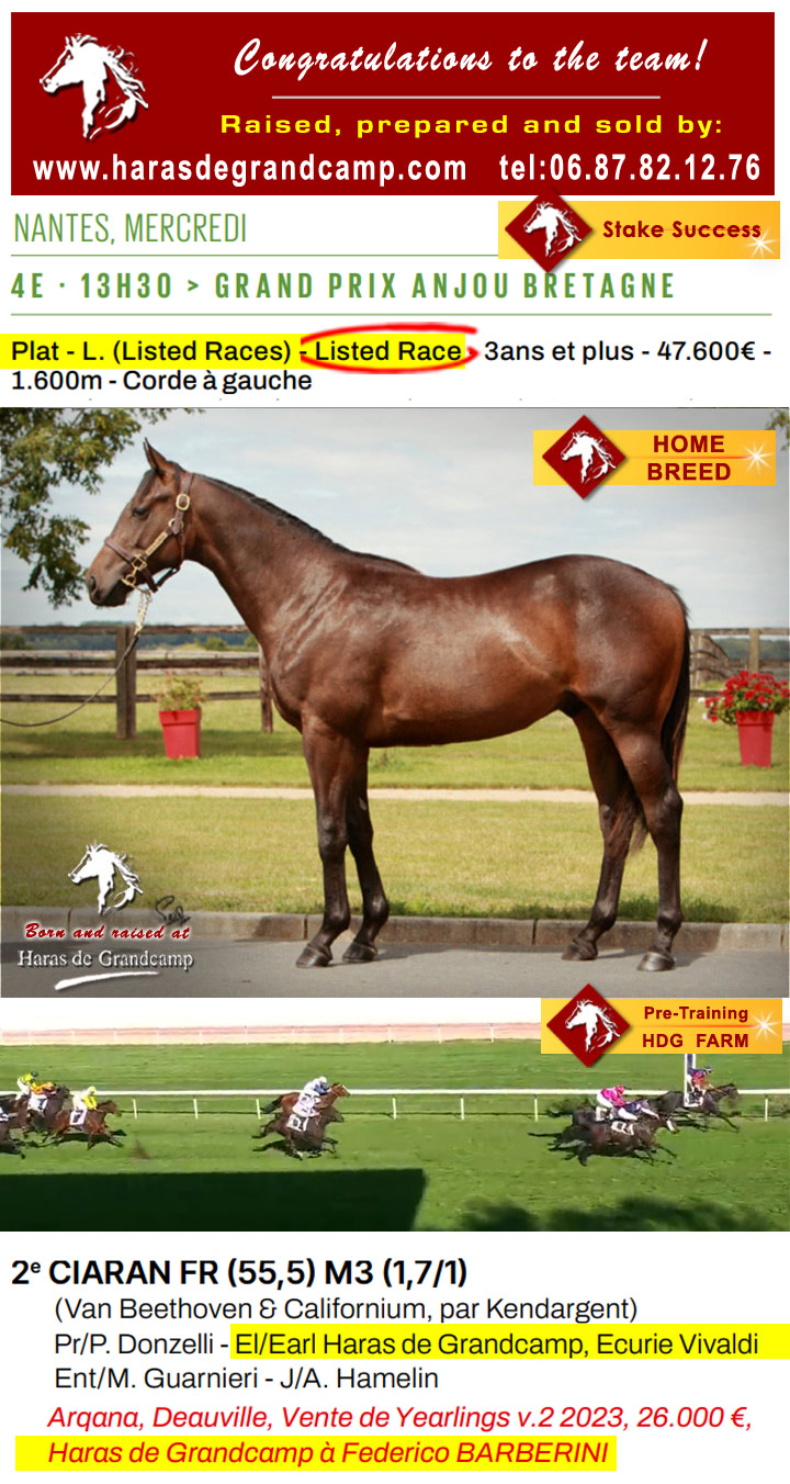 Le 6 avril 2025, HORIZON DORE , né, élevé, vendu, débouré et pré-entraîné par le HDG,